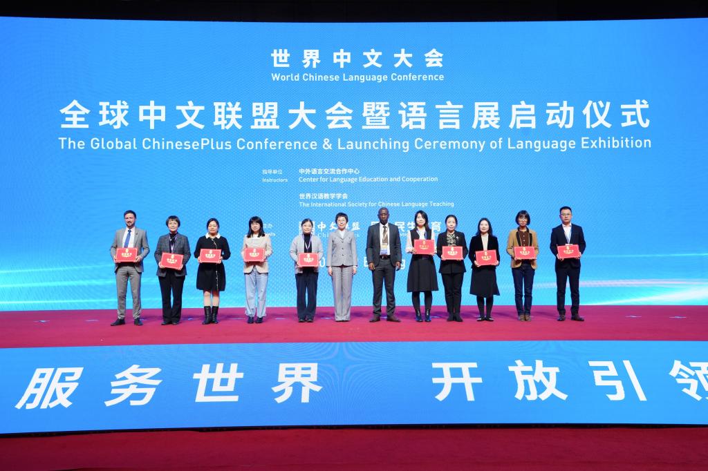 12月7-9日,2023世界中文大会在北京举行,副校长李其朋代表学校受邀参会。在大会专项活动“全球中文联盟大会暨语言展启动仪式”上,我校获2023年度中文联盟数字化教育“金牌合作机构”与国际中文教育专业“语言桥”特色实践基地称号;我校选送的《初级汉语综合》课程荣获“金课”称号,课程负责人陈海芳老师获“金牌教师”称号。