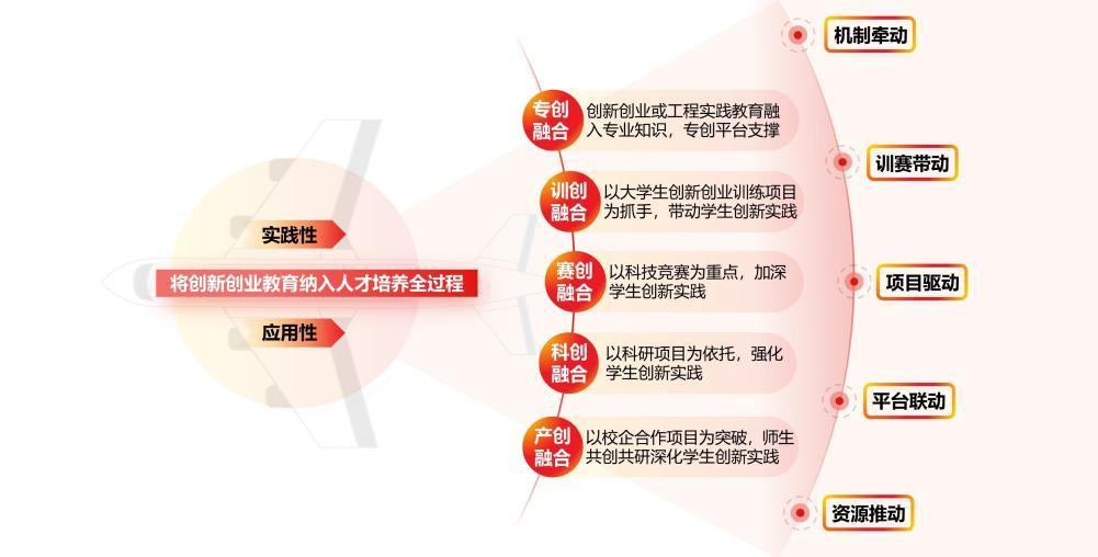 创新创业学院将党建工作融入教师创新创业教育过程中,构建“思创专劳融合、点线面体结合”国际融合的创新创业教育立体课程群及教学体系,驱动创新创业教育质量的竞争力。《创业基础》《劳动教育与实践A》《金工实习》《电工电子实习》等课程先后获得省级线上线下混合式一流课程、线上一流课程、线下一流课程、省级劳动教育课程等。