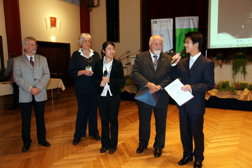 同晚,汉诺威应用科学大学还举行了2009年度德国学术交流中心(DAAD)外国留学生杰出成绩奖颁奖典礼。我校05级2+3项目机械专业学生莫刚波成为该校今年唯一获此殊荣的外国留学生。德国学术交流中心(DAAD)代表苏珊娜•欧特女士及汉诺威应用科学大学校长温纳•安德烈斯教授共同为莫刚波颁奖。莫刚波同学在答谢辞中感谢两所母校的共同培养,表示将再接再厉,争取更大进步,为中德两国经济、文化、科技交流更好服务。据悉,莫刚波同学是我校第七位获得德国学术交流中心(DAAD)外国留学生杰出成绩奖的项目学生。