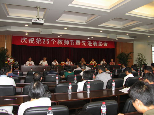 9月9日,学校隆重召开庆祝第25个教师节暨先进表彰会。校领导徐志平、杜卫、胡浙平、陈根芳、吕进、赵东福、冯军、鲁凤出席会议并在主席台就座。会议由校党委副书记胡浙平主持。