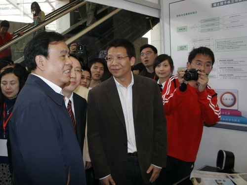12日下午,省长吕祖善在省政府秘书长张鸿铭和省委教育工委书记、省教育厅厅长刘希平等的陪同下参观了我校展位,校党委副书记、副院长陈根芳向吕省长介绍了我校的相关情况。吕祖善首先对我校经过努力被列为硕士学位授予权立项建设单位表示祝贺,指出这是学校上水平的一件大事。他又关切地询问了我校中德合作办学的情况,指示学校要坚持走中德合作和应用型办学之路,学习借鉴德国同类高校办学经验,培养高水平的应用型人才,要逐步扩大对外合作交流,进一步提升合作办学质量。吕祖善对学校提出的全面建设高水平应用型大学的奋斗目标予以了充分的肯定,鼓励学校要坚持自己的特色,找准自己的定位,走特色发展之路,为我省社会经济发展做出更大的贡献。