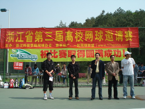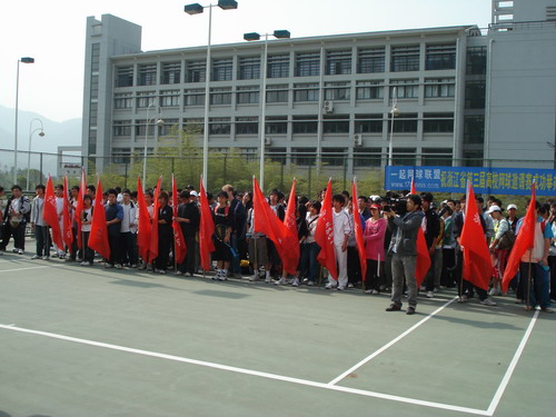 4月26日,天龙·绿洲沙漠杯”第三届高校网球公开赛在我校开幕。经过两天的激励角逐,浙江大学,浙江工业大学,浙江中医药大学从19支参赛队伍中脱颖而出,分列冠、亚、季军,我校代表队位居第四。