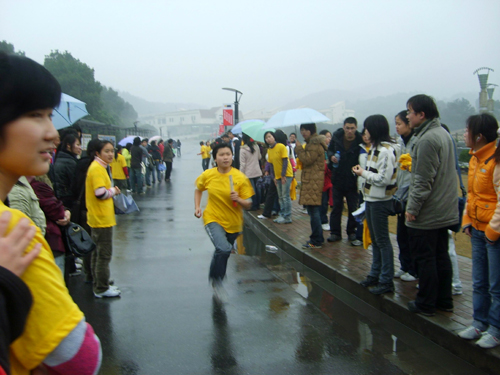 近日,以“阳光体育与奥运同行”为主题的第二届环校园接力跑比赛举行。来自12个学院、男女各两组运动员,共576人参加了这次活动。校党委副书记胡浙平亲临现场。