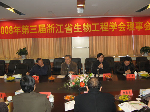 1月6日上午,第三届浙江省生物工程学会理事会议在我校召开。省科技厅副厅长王宏理、浙江省生物工程协会理事长张铭教授,副理事长长江学者、浙江大学农生学院副院长周雪平教授、浙江工业大学生物化工重中之重学科带头人郑裕国教授、浙江大学医学院党委书记陈智教授和来自省内高校、科研院所和高新技术企业等的20位理事参加了会议。