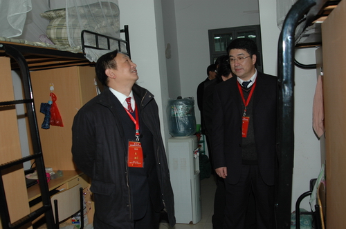 24日下午5时许,专家组一行在校党政领导班子成员陪同下来到东和公寓考察。