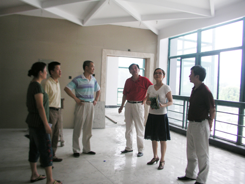 7月31日上午, 副校长吕进在图书馆和基建处负责人陪同下,深入正在进行内装修的图书信息大楼了解工程进展情况。